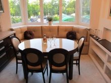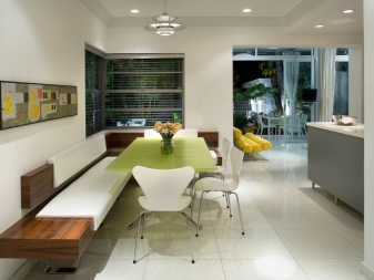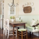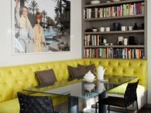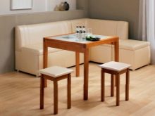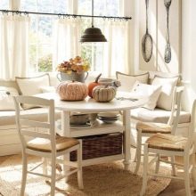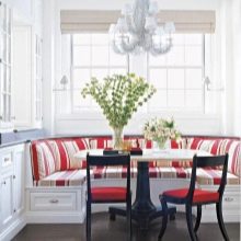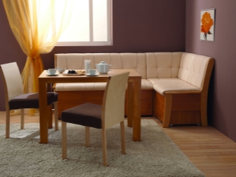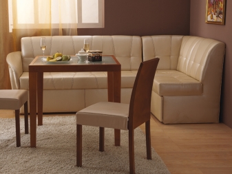 По правило кухненският диван се използва като елемент на трапезарията и съответно се използва като допълнителна зона за сядане на масата. Ето защо е важно тя да отговаря на височина на масата за хранене, в противен случай ще бъде просто неудобно за ядене..