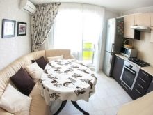 - Ако желаете, можете да поставите обичайния трансформиращ се диван с механизъм в кухнята “Еврокнига”. Въпреки това, в малка кухня, тя може да изглежда обемиста поради високия гръб и голямата дължина..