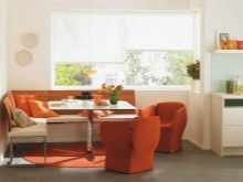 - Второ, дизайнът на такива дивани е много удобен от гледна точка на тяхната конфигурация: те нямат високи облегалки, неудобни подлакътници или твърде пружиниращи седалки, в които лесно се пада. Кухненските дивани трябва да са малко по -твърди и е по -добре да оставите мека мебел за хола..