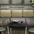 - Без подлакътници диван “Сенатор” лесно се вписва в интериора на малка кухня.