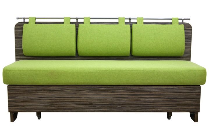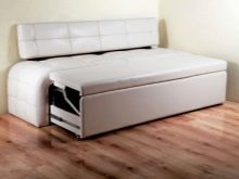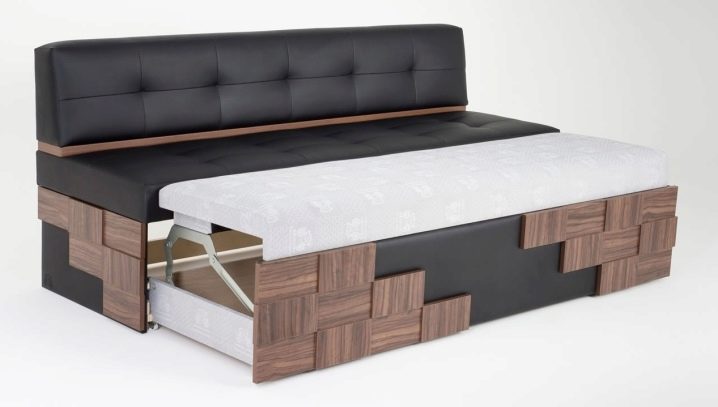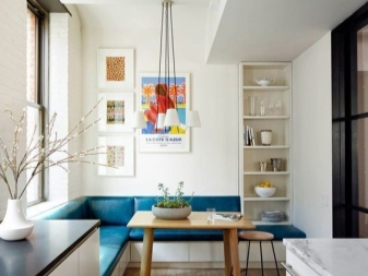 Диванът с място за спане идеално ще се впише в кухненския интериор поради малкия си размер. Благодарение на тези мебели, вие не само ще получите допълнително легло за спане, но и ще добавите места за гости на масата. В допълнение, този елемент ще добави стил в стаята..