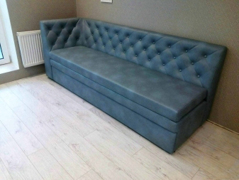 Кухнята в съвременния свят вече не е просто място, където хората приготвят храна. Той отдавна се е превърнал в място за семейни събирания, където се събират всички роднини и приятели. Следователно интериорът на кухнята трябва да бъде обмислен до най -малкия детайл, така че да можете да седнете удобно там, за да се отпуснете. Малък диван или диван може да добави уют в стаята. И ако е необходимо, можете да поставите гост на него за нощна почивка. Диванът може да бъде с абсолютно всякакъв дизайн, да има кутии за съхранение на вещи. Това ще бъде добра покупка за вашето кухненско пространство..