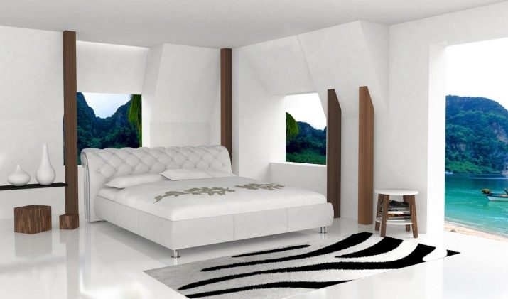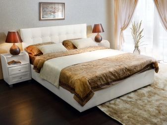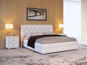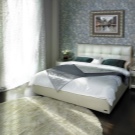 - Стилно двойно легло с високо и меко табла не затрупва пространството на стаята, но я прави стилна и елитна. Това легло се вписва идеално във всеки стил на спалнята. Също така ще бъде идеален за спалня с малка площ, защото повдигащият механизъм осигурява допълнително място за съхранение, а белият цвят само подчертава неговата изтънченост.