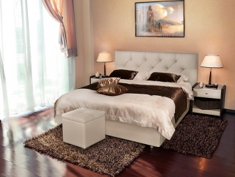 - Наличието или отсъствието на табла тези мебели ще зависят само от личните предпочитания и общия стил на дизайна на спалнята. Всъщност такъв елемент няма практическа полза, освен приятно естетическо възприятие..