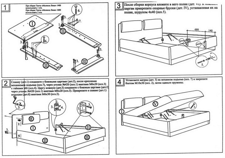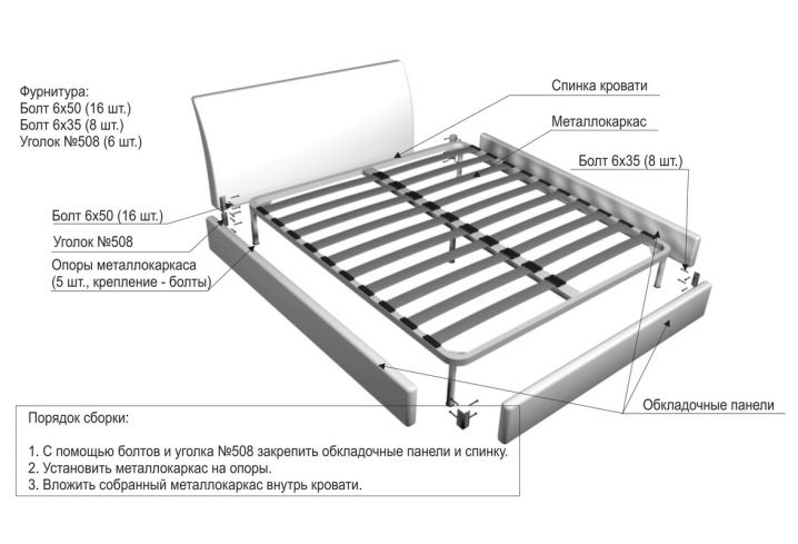 По време на сглобяването на такива мебели трябва да държите под ръка инструкциите за закупения модел, за да проверите своевременно процедурата и правилността на закрепване на частите на леглото една към друга.