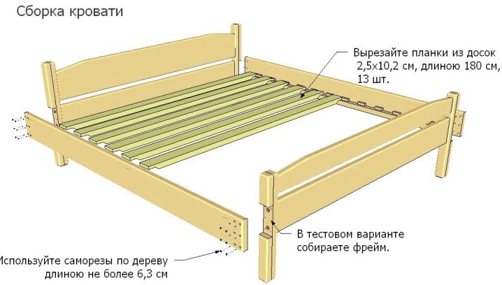 Леглата обикновено се продават разглобени за лесен транспорт. За да сглобите мебели, можете да се свържете със специалист или да го сглобите сами. Комплектът обикновено включва подробни инструкции за сглобяване. Тъй като има много опции за легло, ясно е, че инструкциите за сглобяване не могат да бъдат еднакви. Но приблизителната версия на сглобяването на леглото е показана на диаграмата..