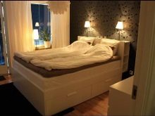 - Практичен модел на Brimnes подходящ за хора, които ценят удобството, комфорта и практичността. Моделът е оборудван с чекмеджета за съхранение на бельо, а таблата е оборудвана с рафтове. Материалът, използван за производството на мебели – ПДЧ.