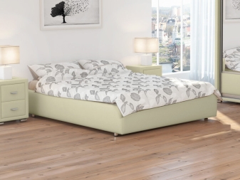 - компактен размер – леглата без облегалки обикновено са малко по -малки от стандартните опции, което ги прави много популярни за собствениците на малки апартаменти. Има модели с размери 160х200 см, 120х200 см; леглото също може да бъде направено по поръчка, като посочи необходимите параметри на капитана;