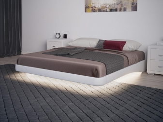 Леглата без табла се различават по външен вид не само от стандартните места за спане, но и се различават помежду си. Има няколко опции за тези мебели: