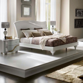 - Що се отнася до малките спални, тогава леглата с големи размери могат да бъдат поставени и тук. Важно е само да изберете оптималния размер и форма. Експертите не препоръчват да се монтират кръгли легла в малки спални, тъй като те заемат много полезно пространство. Ако е възможно, можете да закупите вграден дизайн. Може да бъде оразмерен, за да пасне на всеки кралски стил, но ще се скрие в стена или килер.