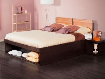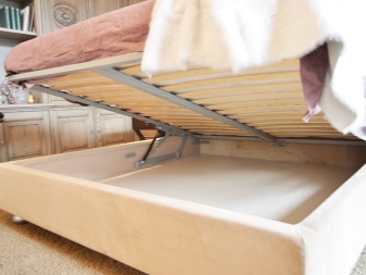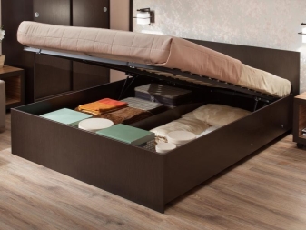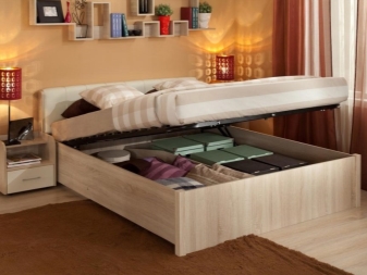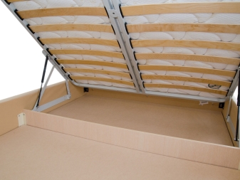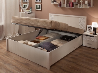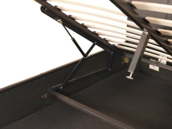 - Лесна употреба. Ако леглото е оборудвано с повдигащ механизъм с газови амортисьори, тогава дори дете може лесно да стигне до кутиите – основата буквално ще се издигне безшумно и леко ще падне назад;