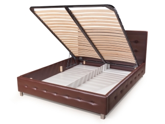 - Ormatek е руска компания с безупречна репутация и богат асортимент от легла с асансьор – “Alba” с висок мек гръб, елегантен “Como” и други. Трябва да се отбележи, че всички модели с повдигащ механизъм на тази марка са изработени от ламинирано ПДЧ (включително с текстилна тапицерия).