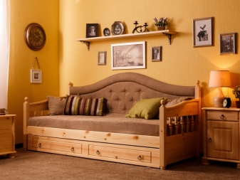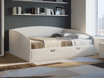 И ако инсталирате този модел легло така, че страничната облегалка да е близо до стената, ние ще предпазим стенното покритие от избърсване, а също така ще се превърне в защита през студения сезон от течения, студени и влажни стени. Този модел е в състояние да осигури добра почивка и здрав сън..