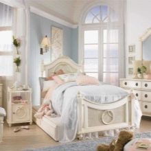 Друга отличителна черта на леглата в стил Прованс са високите крака с елегантна форма, които балансират обемността на конструкцията и поддържат специална ефирност на стилната атмосфера..