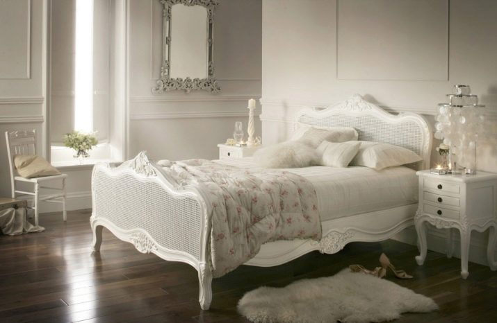 Основното изискване, което формата на леглото в стил Прованс трябва да издържи, е да има впечатляващи размери.. Класическият дизайн на леглото е изпълнен с издълбани и деликатно извити детайли.