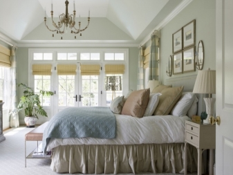 - За да придадат особен чар и да подчертаят избрания стил, съветват дизайнерите поставете възглавници в горната част на леглото, за да съответстват на основния нюанс на леглото, украсени с волани или флорални дизайни. Възглавниците се избират в различни размери, обикновено с правоъгълна форма. Основното нещо е да не забравяте за чувството за мярка, тъй като сте твърде увлечени от процеса на декориране.