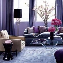 - С лилаво можете да подчертаете всяка част от стаята. Използвайте панел, килим, завеси или възглавници.