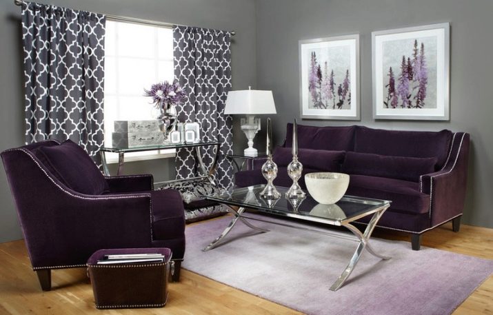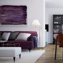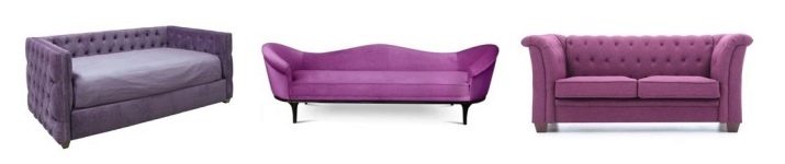 Преди да купите лилави мебели, трябва да разберете как правилно да комбинирате нюанси. Диванът ще бъде основният обект, който може лесно да се играе с помощта на лилав килим, необичайни снимки. Правилно подбраните завеси ще свършат работа. Не забравяйте, че лилавото може да се намери в различни тонове, така че ще трябва да изберете и най -подходящия вариант..