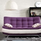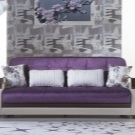 За други помещения можете да изберете опция от кадифе, еко кожата се показа не по-малко добре. С помощта на текстилна тапицерия можете да направите лилавия си диван по -домашен и уютен. Ако изберете светли нюанси на текстурирани тъкани (рипс, кадифе, руно), можете да получите допълнителна топлина и насипно състояние.
