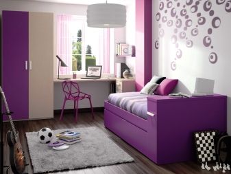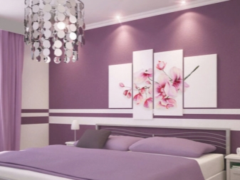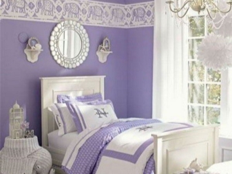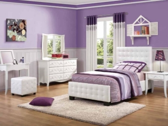 - Можете да боядисвате стените в деликатен бял и лилав цвят. Тази опция е особено актуална, ако оборудвате спалнята на младо момиче..