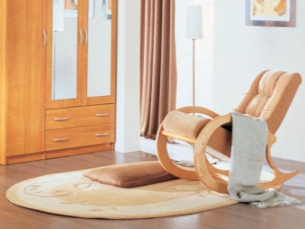 - Ергономичен. Структурата може да бъде направена от различни материали, които перфектно се адаптират към различни интериори. Трябва да се отбележи, че люлеещият се стол може да се използва по същия начин като пълноценен стол..