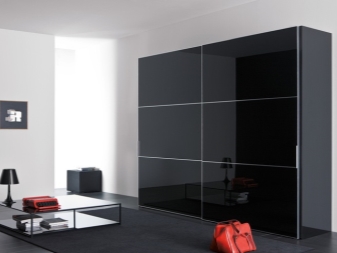 Класическият цвят се използва активно при производството на мебели. Ако черните матирани продукти изглеждат обемисти и мрачни, тогава благодарение на лъскавата текстура такива негативни фактори изчезват. Черен шкаф с лъскава повърхност ще изглежда страхотно в просторен хол, направен хай-тек. Мебелите в този цвят ще добавят шик и изтънченост към декора. Черните модели се препоръчват да се инсталират на фона на светли стени. Контрастният ефект ще придаде на интериора повече изразителност. Ако търсите мебели за детска стая или компактен апартамент, по -добре се откажете от черния шкаф..