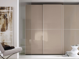 Гардероб с лъскава фасада може безопасно да се монтира в стилове таванско помещение, хай-тек, модерен, минимализъм. Горната опция за покритие е в перфектна хармония с различни естествени материали, като дърво или камък..