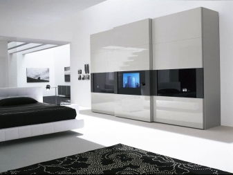 Такива модели са перфектно комбинирани с лъскав под или таван.. Мебелите с отразяващо покритие в ярки цветове ще се справят перфектно с ролята на колоритен и ефектен акцент. Не забравяйте, че независимо от външния вид, гардеробът за дрехи и други неща трябва да бъде практичен и просторен..