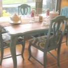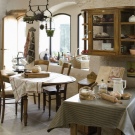 Разбира се, масите в стил Прованс могат да бъдат нещо повече от маси за хранене: малка кръгла или овална маса може перфектно да служи като масичка за кафе и е много удобно да поставите ред саксии с цветя на малък правоъгълен плот.