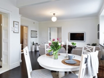 - Маса в ниша: ако стаята има определено пространство между две стени, в такава ниша можете да оборудвате място за трапезария. Тази опция може да има много места, но практически не заема територията;