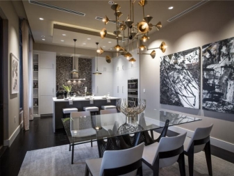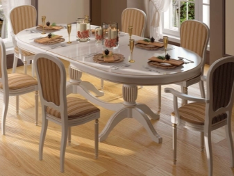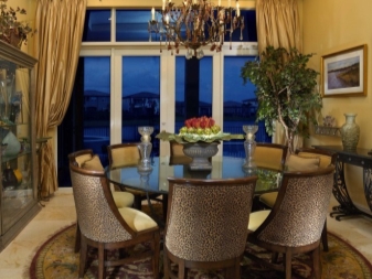 Има много стилови решения, тяхното разнообразие е продължение на стила на интериорната декорация, като е неразделна част от цялостната концепция. Понякога не е напълно ясно какво е първо: маса с невероятна работа, която се нуждае от прилична среда, или уникален дизайн на стаята, където трябва да вземете мебели.