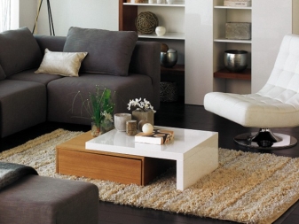 - Ниски маси: се използват, когато хората ще седят зад него на килими или възглавници. Този стил на интериора предполага ориенталски мотиви. Масите са украсени с изискани резби, орнаменти, инкрустирани с камъни, височината им не надвишава 30-35 см.