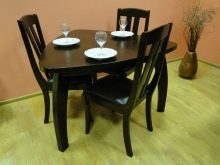 - Триъгълната маса е рядко явление, но съществува. Тази форма е предназначена за три места. Много удобен вариант за малко семейство. В допълнение, малки маси за кафе често се правят с тази форма – изглеждат миниатюрни, но в същото време площта на плота е доста голяма..