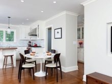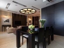 - Маса в ниша: ако стаята има определено пространство между две стени, в такава ниша можете да оборудвате място за трапезария. Тази опция може да има много места, но практически не заема територията;