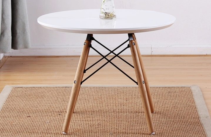 - тесни конструкции на високи крака с овална купа за съхранение под плота на масата;