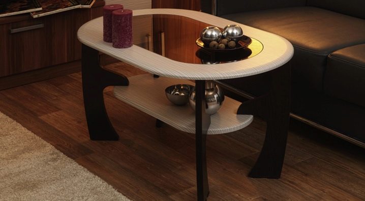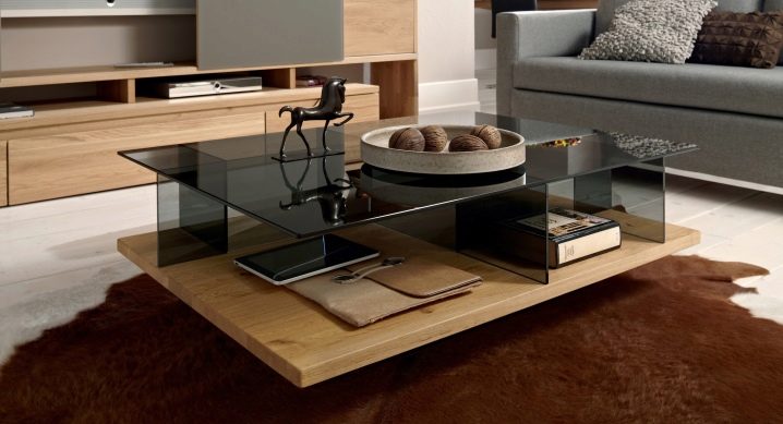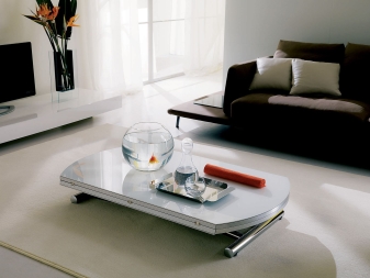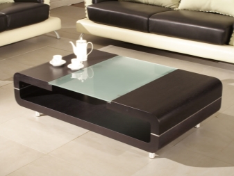 Но такова разделение е подходящо само за онези видове маси за кафе, които бяха пуснати като част от масовото производство на мебелни комплекти за хола. Ако говорим за единични опции, тогава те могат да се изпълняват не само в съответствие с горните стилове, но и в такива посоки като “Loft”, “Modern” или “Hi-tech”.