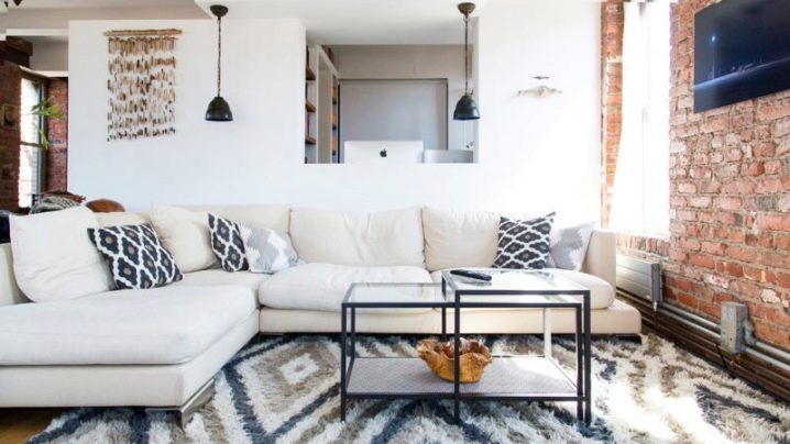 - Всекидневната в бели тонове очевидно се нуждае от малко съживяване За това сочната червена маса, разположена близо до дивана, е идеална. На такова място конструкцията не пречи на преминаването и привлича вниманието. Освен това разположението на масичката за кафе до меката мебел ви позволява да държите всичко необходимо под ръка..