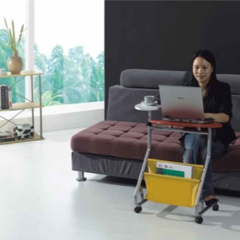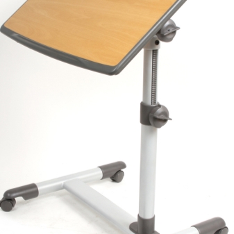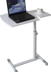 Ако обичате да се местите от място на място или дори от стая в стая с лаптоп, най -добрият вариант в този случай е да закупите маса с ширина не повече от 50 см. Такива модели са компактни и леки. Освен това, когато работите на различни места, ще трябва да можете да регулирате височината на масата или ъгъла на плота на масата. След това изберете модели, в които са предвидени такива функции. Ако предпочитате таблет, а не лаптоп, възможността за регулиране на ъгъла на накланяне е задължителна функция.