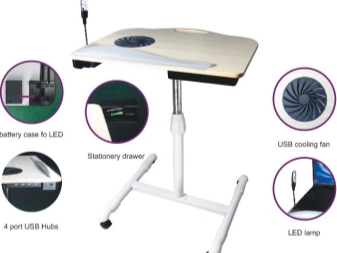 Масата за лаптоп може да бъде толкова проста, тоест да се състои от плот за маса и крака, или да е оборудвана с допълнителни функции. Например възможността за регулиране на краката по височина или промяна на ъгъла на наклон на плота на масата. Подобни допълнения придават комфорт на експлоатацията на мебелите..