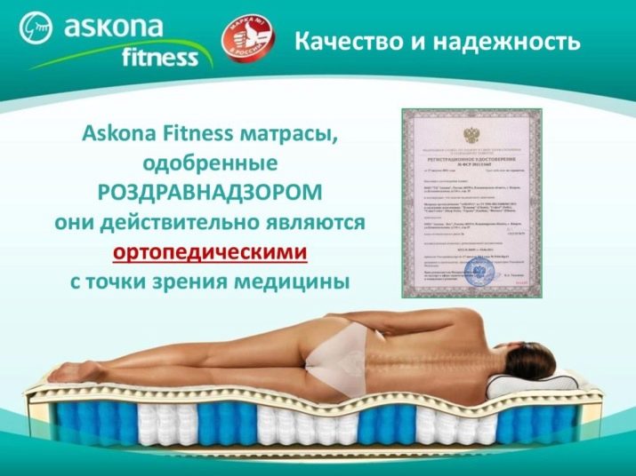 Продуктите на Askona са оборудвани с универсални пружинни блокове, които осигуряват най -добрата опора за гръбначния стълб. Поради различната степен на твърдост, всеки човек ще може да избере точно матрака, на който ще бъде най -удобно да почива..