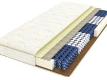 - Матрак „Усилие за прикриване“, със средна твърдост и височина 26 см – един от най -популярните в асортимента на марката. Вътре има 5-зонален пружинен блок, издържат натоварване от 140 кг. Покрит е с трикотажна тъкан, импрегнирана с алое вера.