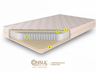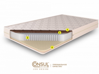 Консулските матраци от пружинен тип могат да се нарекат ортопедични. Изработени са от еластичен, еластичен и устойчив на деформация материал, не скърцат, не се чупят при проектното натоварване, имат дълъг експлоатационен живот и нямат токсична миризма. Тези матраци не се огъват под тежестта на потребителите, лишени са от пружиниране и имат различно ниво на опора за тялото в зависимост от структурата на блока. Такова опаковане няма пружини, поради което е абсолютно безопасно за здравето на децата и ако считаме, че производителят често свързва структурите на блокове със смола от естествен произход, потребителят няма да бъде измъчван от главоболие, замаяност, липса на въздух и задух..