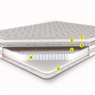 Технологията на подреждане на пружините е уникална: колкото по -малък е размерът и диаметърът на пружините, толкова по -високо е тяхното разположение, толкова повече има, по -гладка е повърхността и по -голям е ортопедичният ефект..
