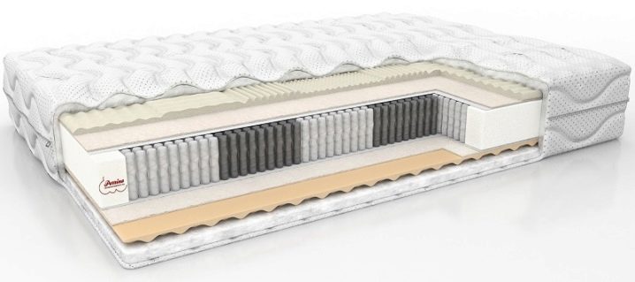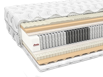 Свалящ се и почистващ се капак, импрегниран със средство за облекчаване на напрежението и има вентилационна система. Като основна конструкция се използва пружинен блок с 1000 пружини на място. Това ще ви позволи да си починете добре, да спите и да забравите за болките в гърба и гръбначния стълб.. Допълнителна поддръжка се осигурява от кокосов кокосов латекс и ерголатекс с клетки. Височината на матрака е 23 сантиметра.