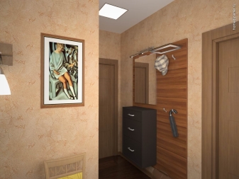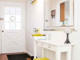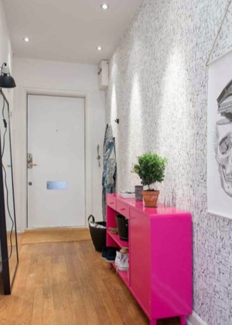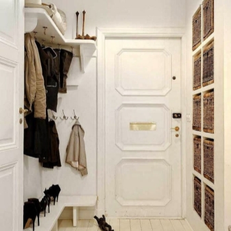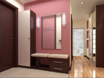 - Малка стая на входната врата може да побере само най -необходимото: оставете минимум мебели и е по -добре да ги фиксирате на стената.