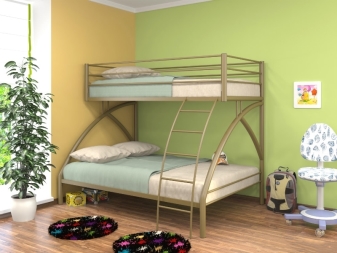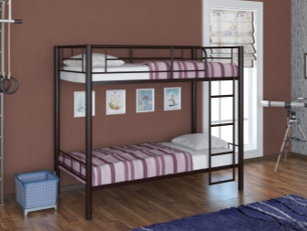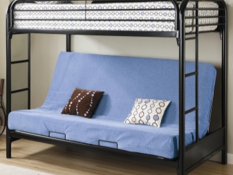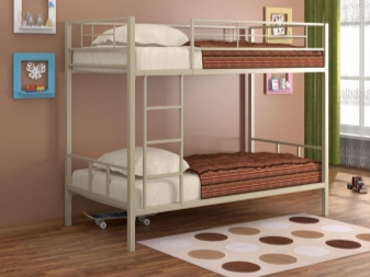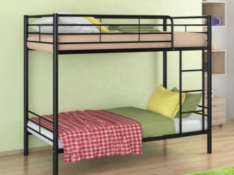 Има и двуетажни легла. Конструкциите върху метална рамка комбинират две едностепенни легла, които се монтират едно върху друго.