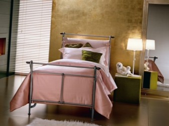 Металът е доста труден за адаптиране към интериора, особено ако се използва един такъв атрибут.. Ето защо, за да изглежда леглото доста практично, трябва да бъде допълнено с няколко допълнителни елемента: