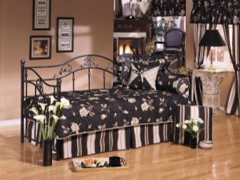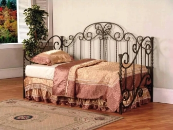 - Най -накрая, дизайнерски модели с метални крака, често приличащ на античен кралски диван, това е най -многобройната категория железни легла. Тук са както ковани модели, така и заварени от метален профил.
