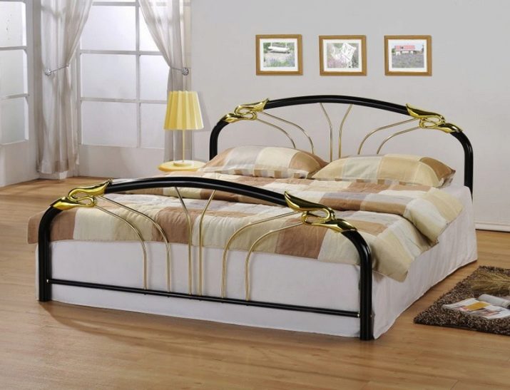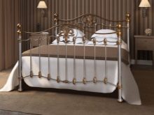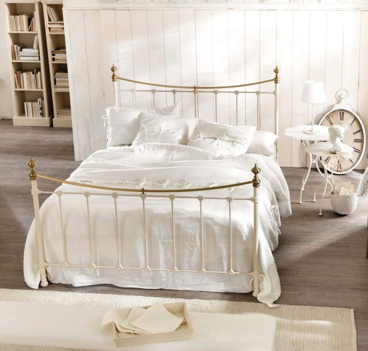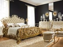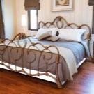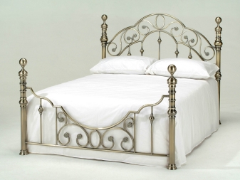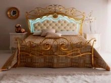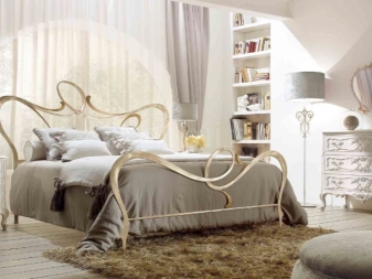 Леглата в цветове от благородни метали са най -подходящи за Барок, рококо, Арт Деко, класически интериор. Леглото, допълнено с елементи от ковано желязо, ще служи като отличен акцент на фона на скъпите шикозни мебели. В този случай обърнете внимание на покривалото за легло. Ефектът на остарялата боя няма да работи за изброените стилове.