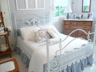 За романтичната стилистика, напротив, леко износване е доста характерна черта. Светлите легла са чудесни за такива интериори, те ви позволяват да придадете на цялата стая атмосфера на лекота и въздух..